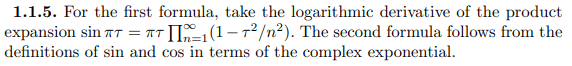 Fourier Expansion of Eisenstein Series: To handle the converge of the product expansion of sine, consider the following product and follow a similar argument as before.